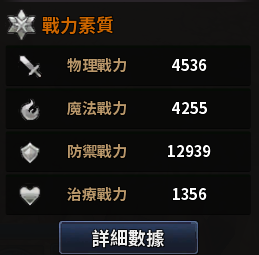 另外,如果想更進一步瞭解自身角色的所有細項數據,可以在角色介面戰力素質表的下方點擊【詳細數據】來打開數據表,便可仔細端詳自己目前的數據加成狀態。