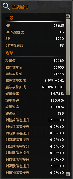 | 魔法戰力 | 智力、敏捷 | 穿透、爆擊 |